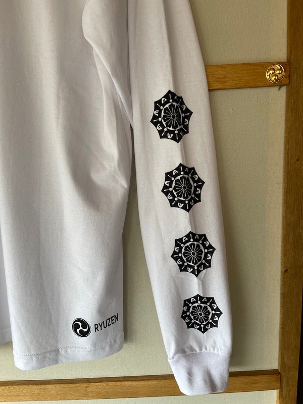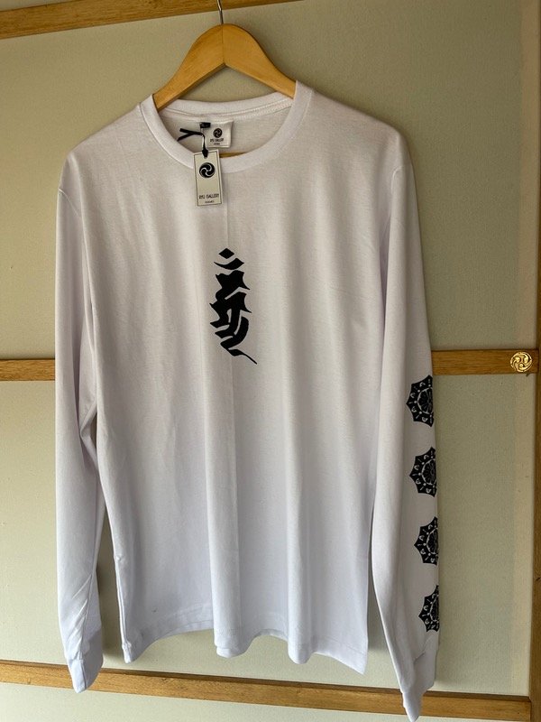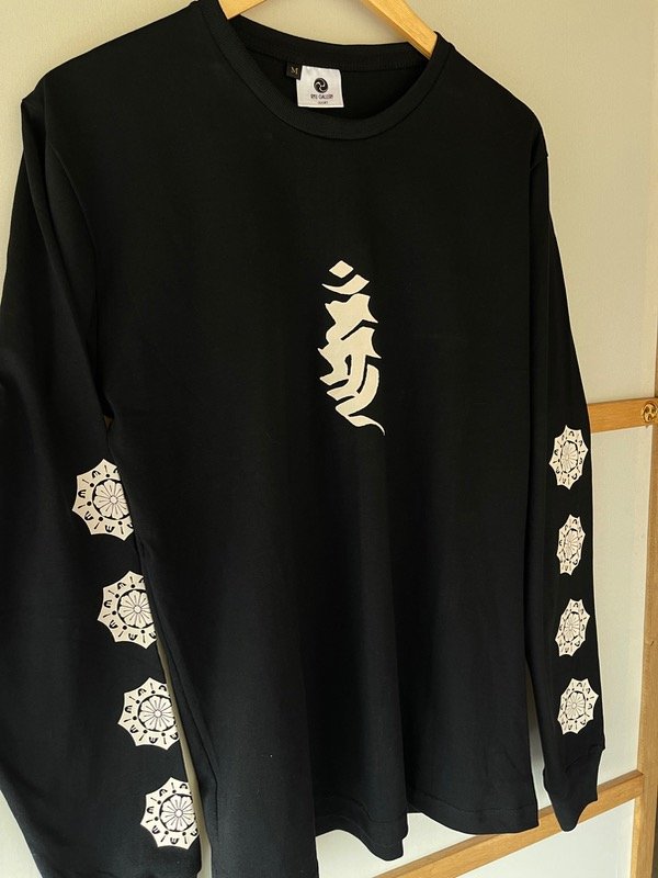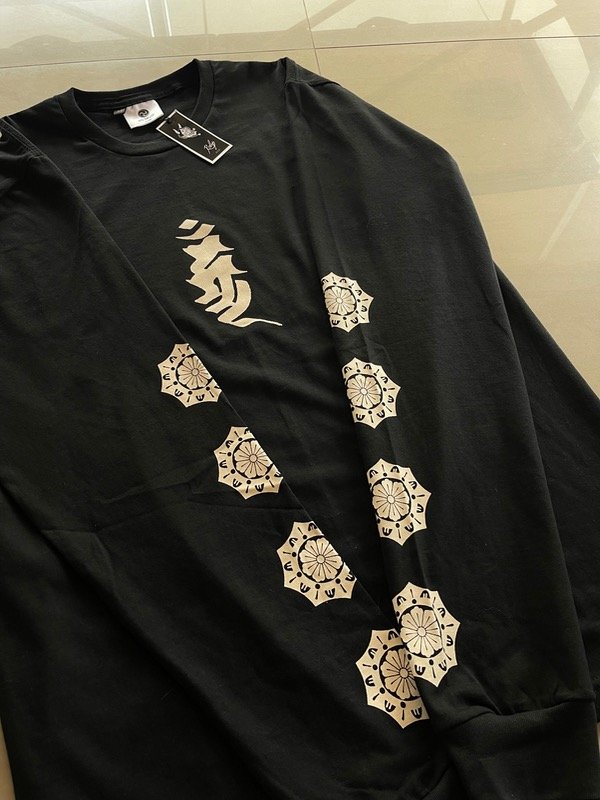 Remera negra o blanca con estampa serigráfica adelante en las mangas y logo atrás.